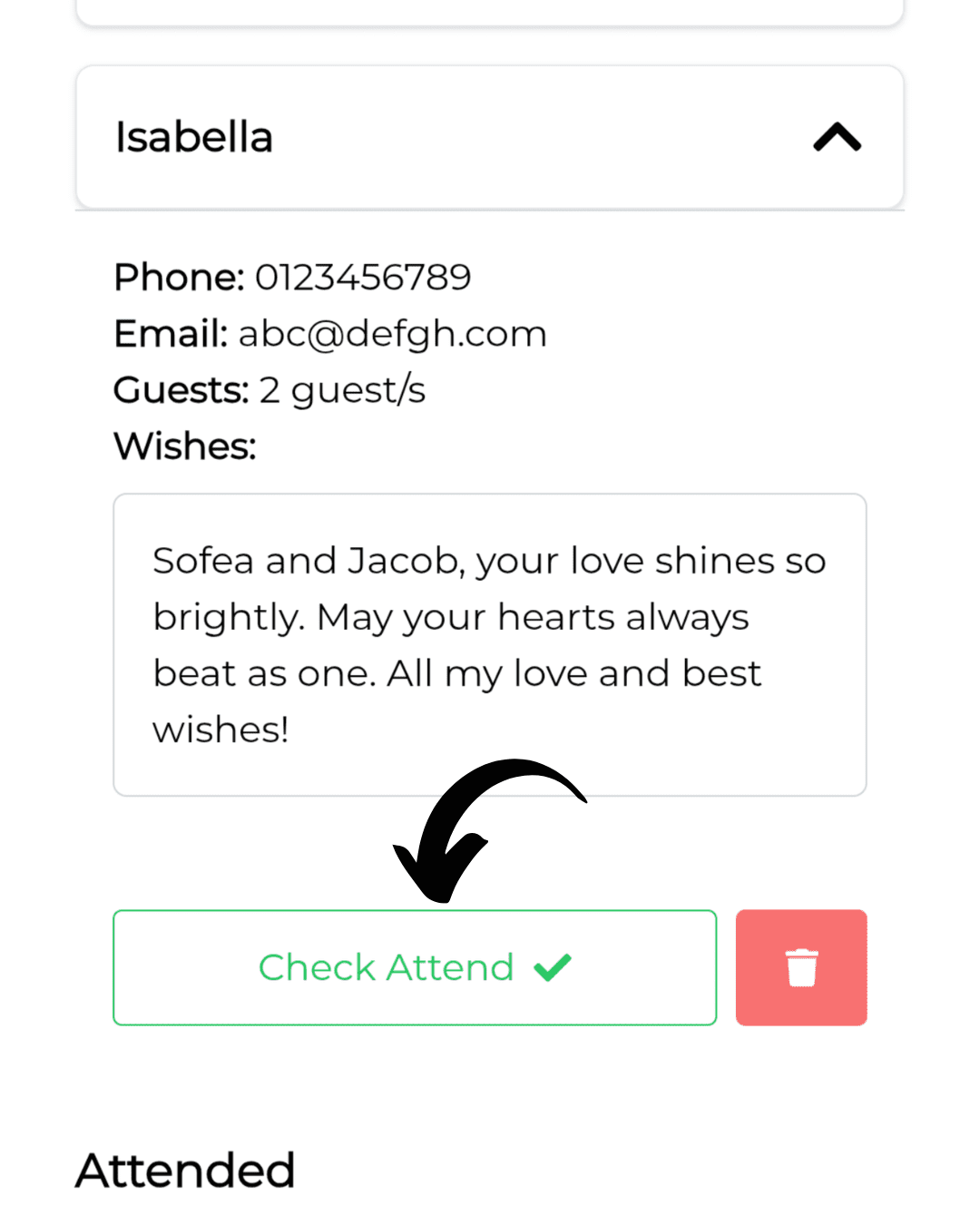 Here you can manage guests in your RSVP list