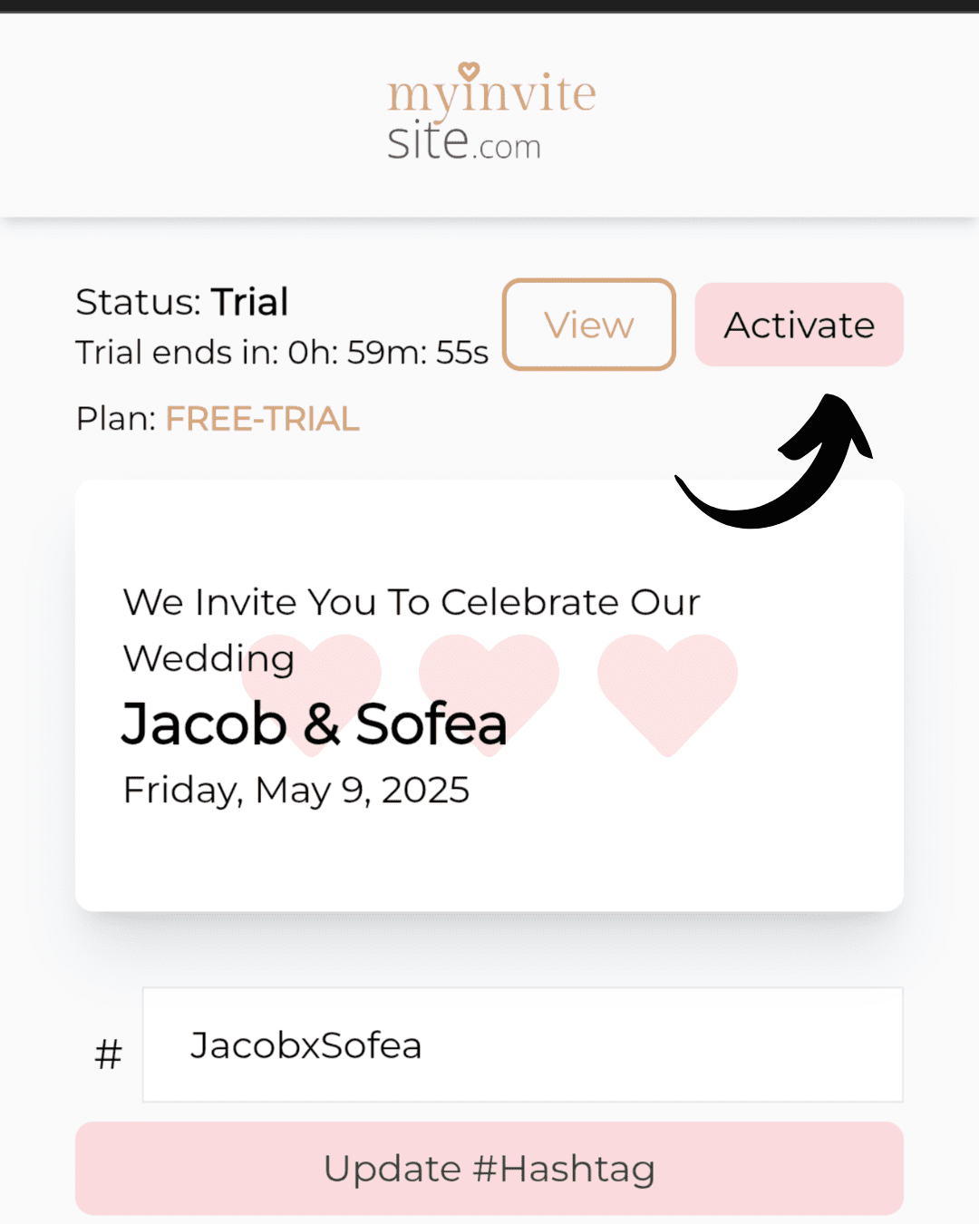 Once payment completed, your invitation will immediately activated